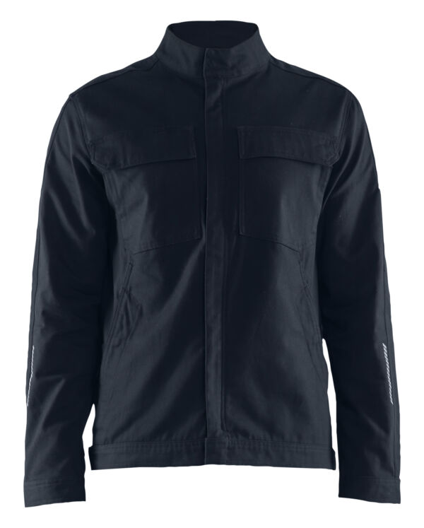 Industri jakke der er godkendt til industrivask og er lavet i et ridsefrit design. Jakken er lavet i en fleksibel bomuldscanvas med to-vejs stretch. Jakken har reflekterende detaljer for at sikre, at du bliver set, når det er nødvendigt.