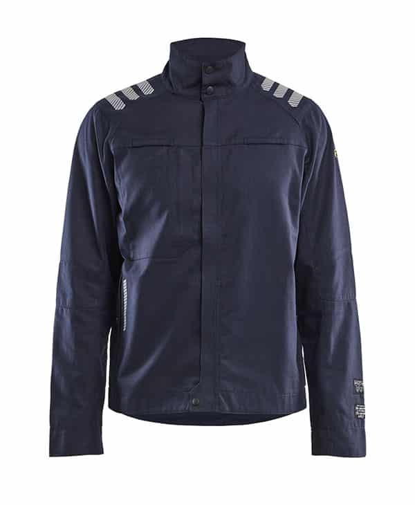 Jakke lavet af et blødt, smidigt og slidstærkt materiale med et let indvendigt for. Denne kombination betyder, at jakken er godkendt til APC 2, den højere klasse for lysbuebeskyttelse. Skjult brystlomme med lynlås, to frontlommer med klap og løkker ved bærestykket til mikrofon, oximeter eller andet teknisk udstyr. Refleksdetaljer for øget synlighed. Jakken er metalfri og har plastiktrykknapper og lynlåse. Certificeret iht. EN 1149-5, EN ISO 11611, EN ISO 11612, EN 61482-2 (APC 2), EN 13034.