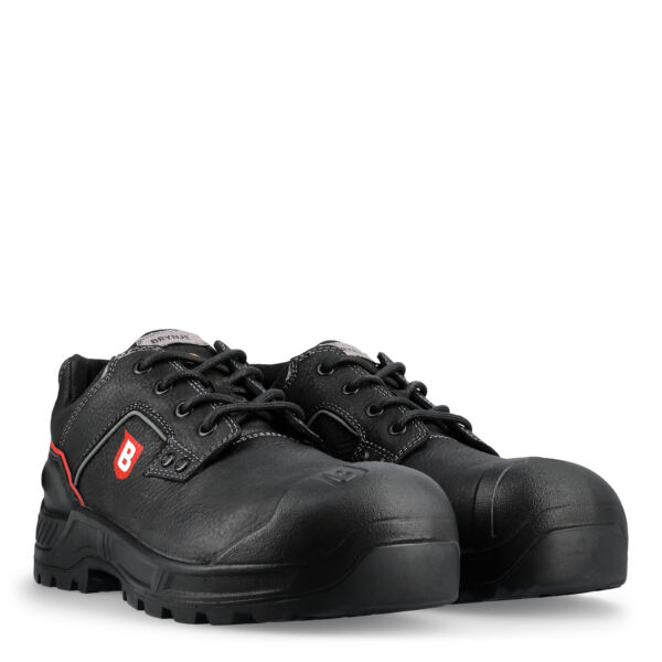 Robust sikkerhedssko med bred pasform. Ekstra slidstærk, fleksibel og stødabsorberende ydersål af PU/nitrilgummi, der modstår varme op til 300 °C (HRO). Af slidstærkt, åndbart og vandafvisende B-Xtreme læder. ESD-godkendt og med ProNose for ekstra slidstyrke. Alu tåværn og fiber sømværn. Str. 39-48. S3 SRC