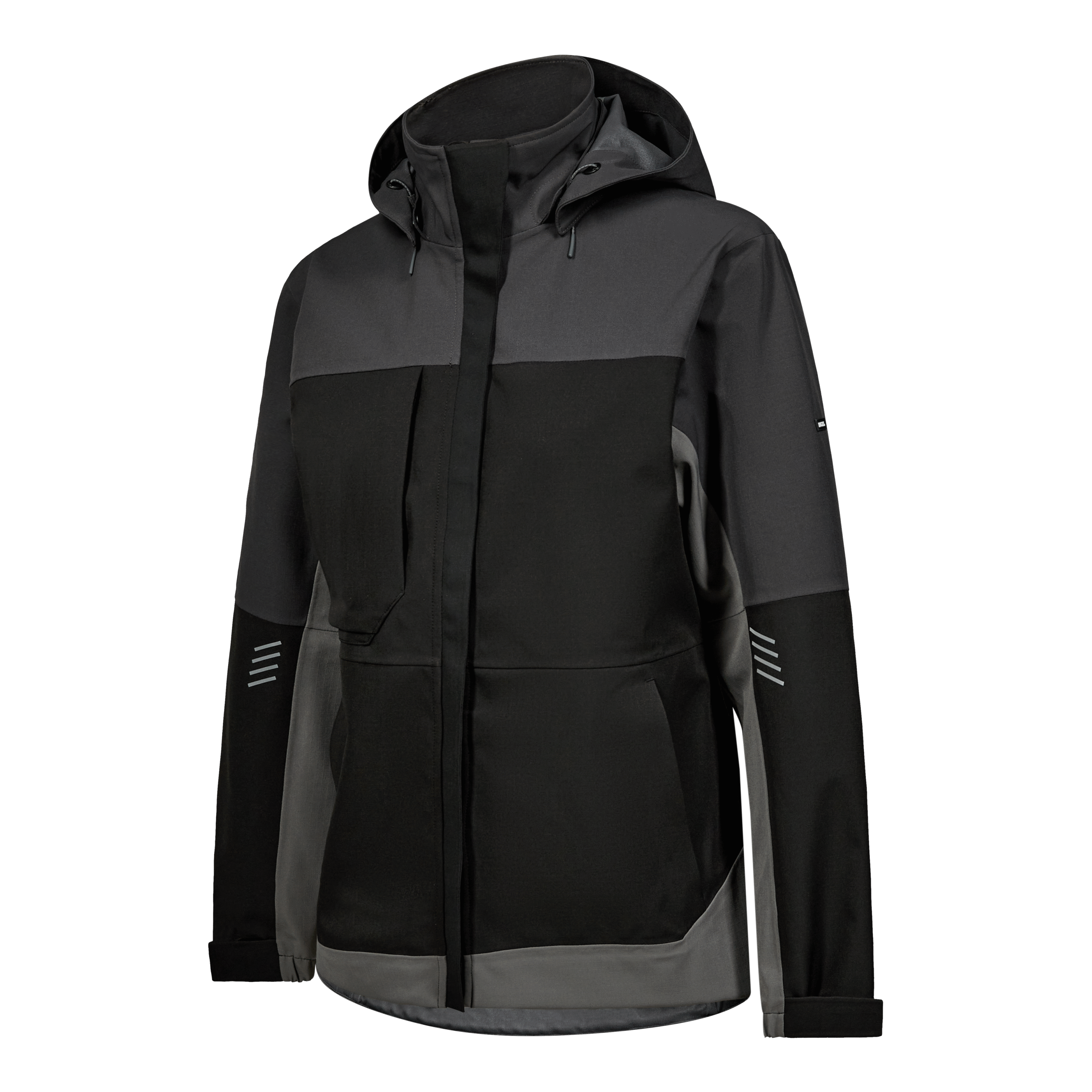 Denne skaljakke til damer er designet med fokus på funktionalitet og komfort. Den er fremstillet i Ripstop med mekanisk stretch for øget bevægelighed. Jakken er både vand- og vindtæt og har tapede sømme for ekstra beskyttelse. For øget komfort har jakken en blød og vindbeskyttende inderkrave. Den praktiske og aftagelige hætte gør jakken yderst anvendelig i mange forskellige arbejdssituationer. Jakken har desuden skjult lynlås foran med en smal stolpelukning som beskytter mod ridser. De mange praktiske lommer giver sikker opbevaring, herunder en rummelig brystlomme og to sidelommer med lynlås samt en praktisk inderlomme med velcrolukning. En D-ring i højre sidelomme gør det nemt f.eks. at fastgøre f.eks. ID-kort. For at sikre en perfekt pasform har jakken elastik og velcrojustering nederst ved ærmerne, så den kan tilpasses individuelt. Refleksprint på ærmerne og ryggen øger synligheden i mørke omgivelser, mens det forlængede bagstykke yder ekstra beskyttelse af lænden. Der er ligeledes god plads til firmaprofilering.