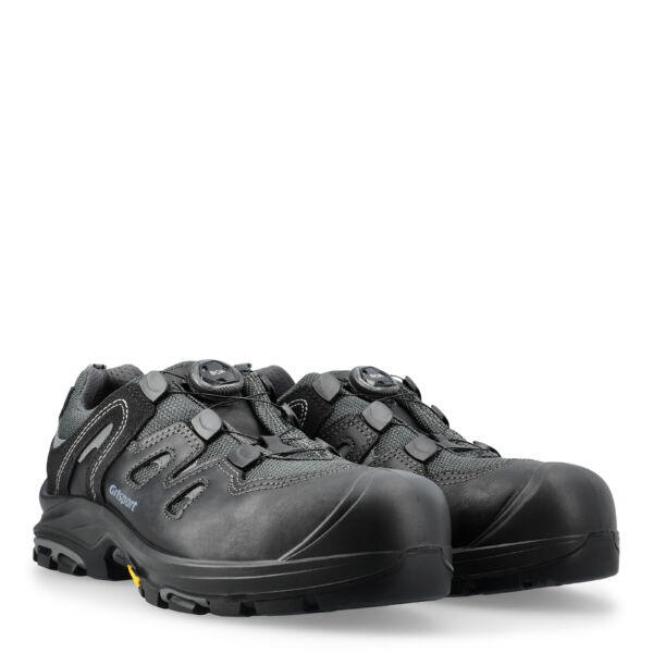Med denne model fra Grisport, får du en slidstærk og robust sikkerhedssko. Den har en skridhæmmende og slidstærk Vibram® ydersål og en PU mellemsål, der bevarer stødabsorberingen i hele støvlens levetid. Overdelen er lavet i en kombination af fuldnarvet læder og Cordura® tekstil, der gør den slidstærk og åndbar. Den har TPU slidnæse, så den kan tåle knæliggende arbejde og BOA® Fit System, så du let komme ind og ud af dine sko.