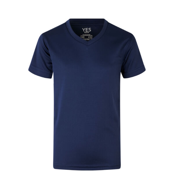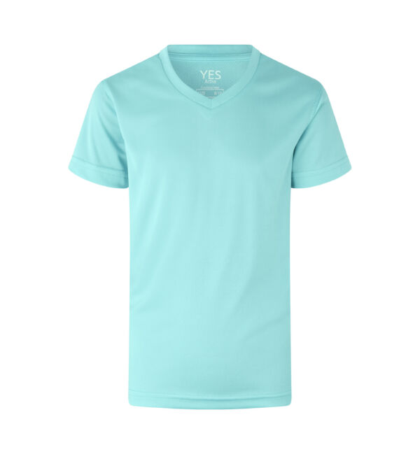 Funktionel T-shirt med V-hals til børn. Svedtransporterende, åndbar og hurtigttørrende kvalitet. Høj funktionalitet til en skarp pris.
