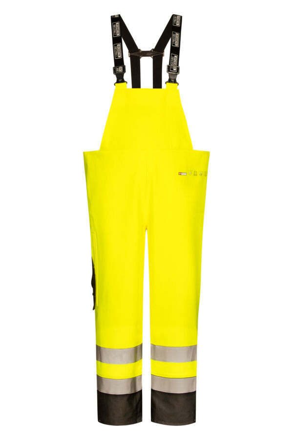 Brandhæmmende Hi-Vis regnoveralls i kraftig PU/PVC kvalitet