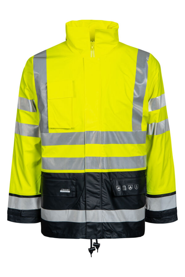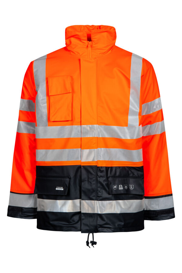 Lyngsøe Brandhæmmende Hi-Vis vinterregnjakke i PU kvalitet med aftageligt quiltet foer