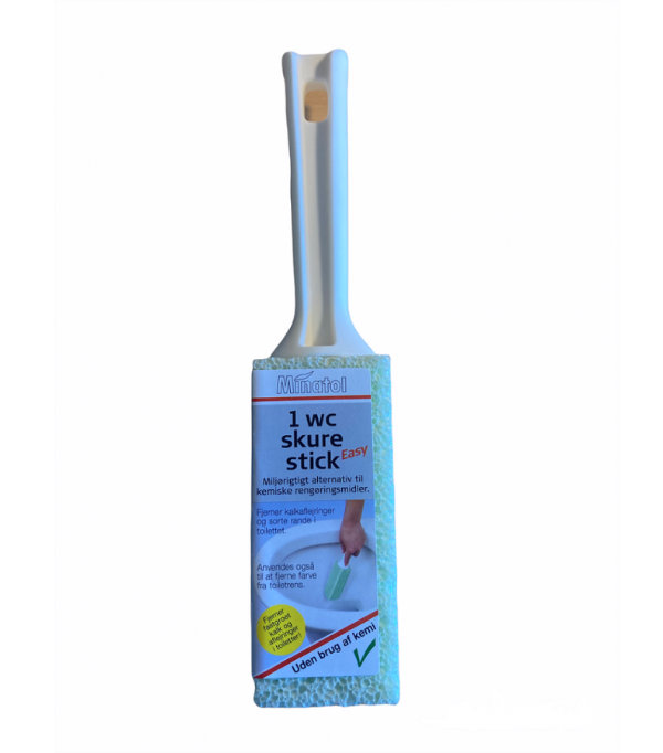 10x4x4 cm, 100% genbrugsglas. Bruges våd, fjerner effektivt kalk, rust og belægninger i toilettet.
